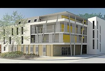 Derrière le groupe scolaire Maxime Marchand s’élèvera bientôt un ensemble qui viendra marquer la traversée de ville par la D 6015. Un ensemble répondant bien sûr aux normes actuelles, à proximité du centre ville et qui vient densifier un secteur non investi encore par la ville.