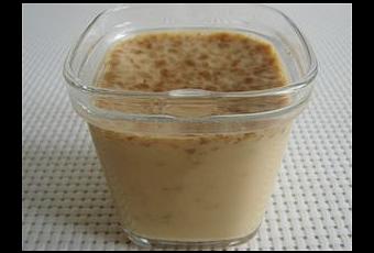 Répartir ensuite le lait dans les 8 pots puis mélanger dans chaque pot afin de bien disperser tous les ingrédients dans le lait .