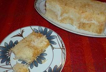 Prendre un moule à cake et mettre dedans une couche de kadayif