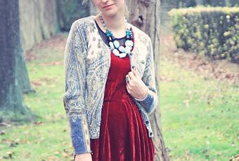 I wear cardigan, velvet dress, owl ring & necklace H&Mloafers New Look