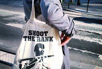 Sac Shoot The Bank. Sac en toile coton sérigraphie à la main à l'atelier de l'artiste !
