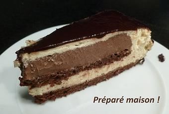 Ce dessert m’a été inspiré du magazine Thuriès (encore !) n°187, j’ai adapté les quantités pour un entremets de diamètre 20 cm (pour 6 à 8 personnes) et remplacé le suprême café par une bavaroise au praliné. Il est très léger et pas trop sucré.