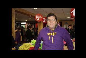 Erwann Créac'h, dirigeant d'A l'Aise Breizh, dans le magasin d'usine qui a ouvert ses portes, pour quelques jours, à Morlaix...