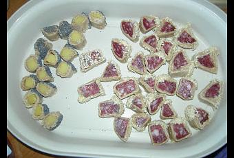 4. Enduisez le pourtour de vos bouchées de beurre et roulez-les dans les graine de sésame.