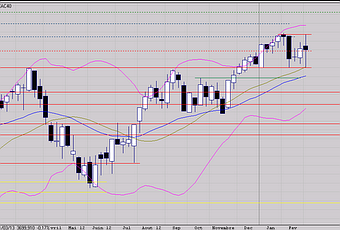 Le doji formé en février avec sa grande ombre basse montre l'échec du courant vendeur et le rôle du support des 3600 points, mais il montre aussi que les 3 dernières bougies blanches, de taille décroissante, et portant des ombres hautes forment une avancée bloquée.