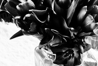 L’inspiration n’était pas particulièrement au rendez-vous pour le thème « Cadre ». J’aurai bien jeté mon dévolu sur une vieille fenêtre mais je n’ai malheureusement pas eu la chance de croiser celle des mes désirs durant ces derniers jours. J’ai donc joué avec un petit cadre de chez mon ami suédois, comme dirait Véronique, et un bouquet de tulipes. Il s’agit du premier de la saison et j’espère bien qu’il annonce le printemps! Pour les curieux, les tulipes sont mauves à la base. J’ai préféré retravailler la photo en noir et blanc pour lui donner un côté plus abstrait.