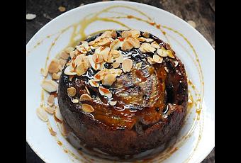 Et comme j'veux pas leur gâcher le plaisir, je souris en disant oui oui j'suis content qu'ON soit en vacances et je cours finir le repas du soir… Parce que vacances ou pas y'a l'appétit lui ne s'arrête jamais !Et aujourd'hui pour fêter nos vacances j'ai eu envie d'un de ces cakes pas raisonnables avec plein de choses dedans… des amandes, du chocolat, des bananes… plein de choses !Cake choco-banane !Ingrédients : 1 très gros œuf (environ 90g) jaune et blanc séparé – 90g de sucre - 90g de beurre – 60g de farine – ½ sachet de levure chimique - 30g d'amande en poudre – 1 pincée de sel – 2 petites bananes bien mûres - 50g de chocolat noir (vous pouvez aussi utiliser du chocolat au lait) – des amandes effilées – du sirop d'érableHachez le chocolat, écrasez une banane à la fourchette et mélangez le tout.Dans un saladier, fouettez le sucre et le beurre. Ajoutez le jaune d'œuf, puis la farine et la levure et l'amande en poudre. Fouettez le blanc en neige ferme puis incorporez-le Beurrez et farinez votre moule, j'ai choisi un moule de 14 cm de diamètre. Pelez et coupez une banane en tranche dans la longueur.Versez un peu de sucre au fond du moule et tassez-y ensuite les bananes.Versez la pâte par-dessus puis enfournez pendant environ 45minutes dans un four préchauffé à 180°.Quand le cake est cuit, laissez-le tiédir, retournez-le puis faites dorer la banane du fond qui est maintenant au dessus, sous un grill. Parsemez dessus les amandes effilées et un peu de sirop d'érable.