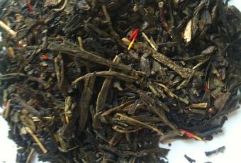 Rien de spécial à la vue de ce thé vert classique : aucune trace de morceaux de fruits, ce qui laisse penser que le parfum est donné par des arômes (naturels ou artificiels, mystère…). La seule couleur présente est le rouge grâce à de petites fleurs… (Carthame ?). On distingue un parfum de fruits rouges, mais difficile de préciser les fruits en questions… Malheureusement, à la dégustation, si l’on peut parler de goût fruité, il est encore plus risqué de parler de fruits « rouges ».