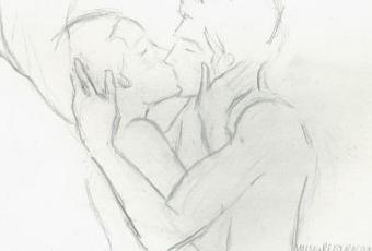 Mais hier, j’ai eu envie de dessiner autre chose. J’ai pensé au baiser de Rodin et je me suis mise à griffonner. Bien sûr, on est loin du chef d’œuvre, cependant j’ai pensé qu’il pourrait faire passer ce message-ci :