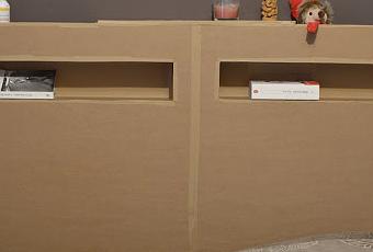Ça faisait un moment que ces grandes planches de carton traînaient (et prenaient de la place!).J'ai eu l'idée d'en faire une tête de lit.Voici la tête de lit à l'état brut, il ne reste plus que la déco à faire(dans l'esprit des tables de nuit)