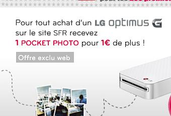 A partir du 5 mars et pour les 200 premiers acheteurs d’un LG Optimus G sur le site SFR, recevez un Pocket photo pour 1 € de plus.