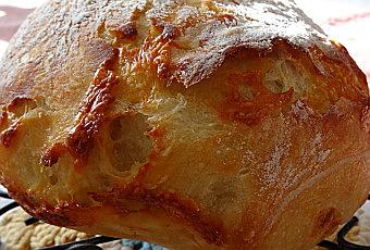 J'avais entendu souvent parler de la recette du pain sans pétrissage, elle est largement reprise sur les blogues (mise au point par Jeff Hertzberg et Zoë François et expliquée dans le livre Artisan bread in five minutes a day), mais je n'avais pas été tentée jusque-là (grande quantité de farine à utiliser, longue maturation au réfrigérateur), jusqu'à ce que je tombe sur le site Simply So Good, par ailleurs hautement recommandable pour ses recettes détaillées pas-à-pas et ses photos très appétissantes.