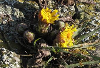 Le Tussilage (Tussilago farfara) est une petite Astéracée jaune précoce, fleurissant souvent dès le mois de février sur les sols dénudés, les déblais, aux bords des chemins et dans les sites rudéralisés.