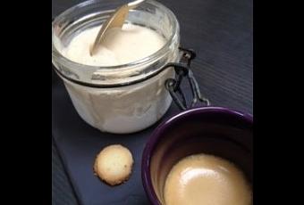 Je vous l’avais promis, le voilà. Honnêtement quand vous aurez goûté à ce caramel au noix vous deviendrez addict. Moi qui n’aime pas les caramels mous et autres nougats, je ne peux plus m’arrêter quand je commence à tremper une cuillère dedans ! Hier soir je l’avais utilisé pour réaliser une glace avec des petits suisses. C’était dément. D’accord vous n’avez peut-être pas de sorbetière alors pourquoi pas le mélanger à une crème anglaise toute simple ou un fromage blanc, c’est plus léger. Et vous en profitez pour grignoter un petit sablé…Bon appétit
