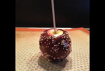 C'est tout simple mais si mignon, un peu de chocolat fondu, une belle pomme quelques billes colorés et le tour est joué !
