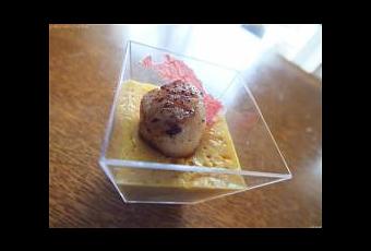 Faites revenir les noix de Saint-Jacques une minute dans une noix de beurre coloré (ne les faites pas trop cuir au risque d'obtenir une Saint-Jacques caoutchouteuse). Disposez-les sur les panacotta.