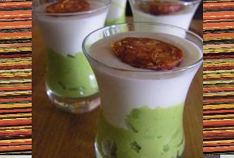 Prenez vos verrines. Commencez par disposer une couche de crème d'avocat (tapotez la verrine pour égaliser la préparation). Disposez ensuite une couche de crème de fromage frais. Terminez par une rondelle de chorizo.