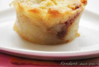 Dans des empreintes à muffins, mettez les poires caramélisées dans le fond, puis une cuillère de crème de spéculoos et recouvrez du mélange beurre/farine/sucre.