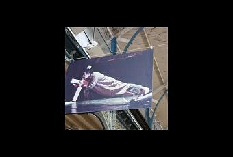 Première étape, sous la halle du marché, sont suspendues des photos de Wojciech Siudeja, artiste polonais. Levez le nez! Elles ont été prises lors d’une représentation théâtrale en Pologne,en 2011, par une compagnie dijonnaise. Il y a un an cet artiste mourait tragiquement à Dijon. D’où les textes émouvants écrits au dos de ces photos sur aluminium par (je suis pas très sûre!! A vérifier! ) Vincenzo Cirillo.