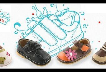 La chaussure 'gazouille' lorsque l'enfant marche correctement, du talon vers les orteils.