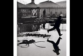 La photo originale date de 1932 et s'intitule Derrière la gare Saint Lazare. Elle est signée par Cartier Bresson et l'on en parle fort bien ici en plus de bien parler de Robert Capa.