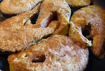 Cette façon de cuire les tranches de poisson est ultra simple, et est délicieuse : il suffit de les enrober d'une fine couche de farine, puis deles tremper dans deux oeufs battus en omelette, salés et poivrer.