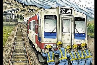 Santetsu, de Koji Yoshimoto, qui vient de paraitre chez Glénat manga, raconte ainsi les efforts immenses déployés par les équipes du chemin de fer japonais afin de rétablir les voies de communications, et donc la vie, d’une région ravagée par la nature.
