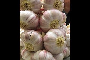 Avant d'afficher leur jolie couleur rose si caractéristique, les bulbes ne sont pas si beaux. Il faut éplucher la dernière peau, ce qui malheureusement les fragilise. Ne vous effrayez donc pas d'acheter une grappe comme celle que j'ai photographiée ci contre et qui a conservé toutes ses tuniques. Elle se conservera plus longtemps.On emploie le terme de grappe en français parce que contrairement à d'autres aulx (je devance votre interrogation : il faut dire des ails lorsque l'on parle de l'ail en tant que plante botanique et des aulx lorsque l'on parle de l'ail comme condiment) celle-ci ne peut pas être tressée. Sa tige est trop dure pour cela. L'ail blanc a une tige molle qui se noue facilement. Et on n'a pas besoin de couper ses fleurs avant de récolter.