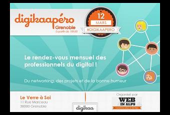 Le premier Digikaapéro grenoblois aura lieu au Verre à Soi, 11 rue Marceau à Grenoble, le 12 mars, à partir de 18h30. L’occasion de faire connaissance avec des graphistes, développeurs, community managers, rédacteurs web pour réseauter, échanger et partager ses expériences.
