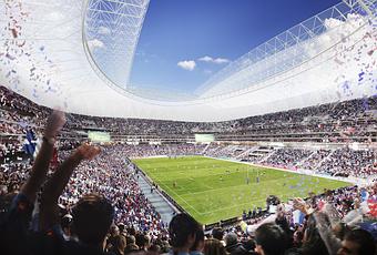 Voici quelques rendus du projet Foster, non retenu par la FFR pour son Grand Stade Rugby. Des trois projets engagés, il est celui que j’aime le moins. J’ai franchement une préférence pour le projet HKS ou Populous (celui qui a été retenu).