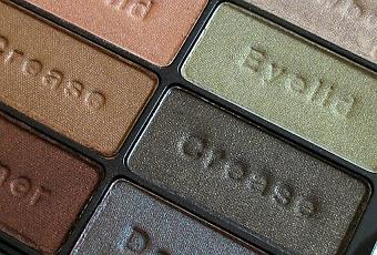 Le fard en question est celui en bas à droite, mais pourquoi cette couleur est-elle si appréciée? Tout simplement parce que c'est une couleur dites "duochrome", selon la lumière on la voit soit marron, soit verte.
