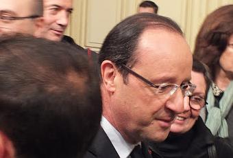 François Hollande dans la salle Pierre Mendès France de l'Hôtel de ville de Louviers en janvier dernier. (photo Jean-Charles Houel)