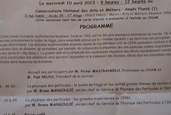 Le CNAM/SFEN m’envoie une invitation pour le 12 AVRIL , sujet : le boson de HIGGS . Etant à PRINCETON , je ne pourrai pas y aller .Cela dit j’ai traité le sujet ici et même les diverses expériences du LHC par le menu ET JE N’AIME PAS TROP L’INTERET ET LE TON DONNE A CETTE DECOUVERTE( ?)…. Inscrivez vous selon votr