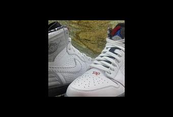 Ces Air Jordan 1 ont un dessus en cuir et cuir perforé blancs contrastés par du nubuck gris, des touches de rouge, de bleu et de noir reprenant des éléments de la Air Jordan 8 Bugs qui sortira le 20 avril 2013 sur le Nikestore.