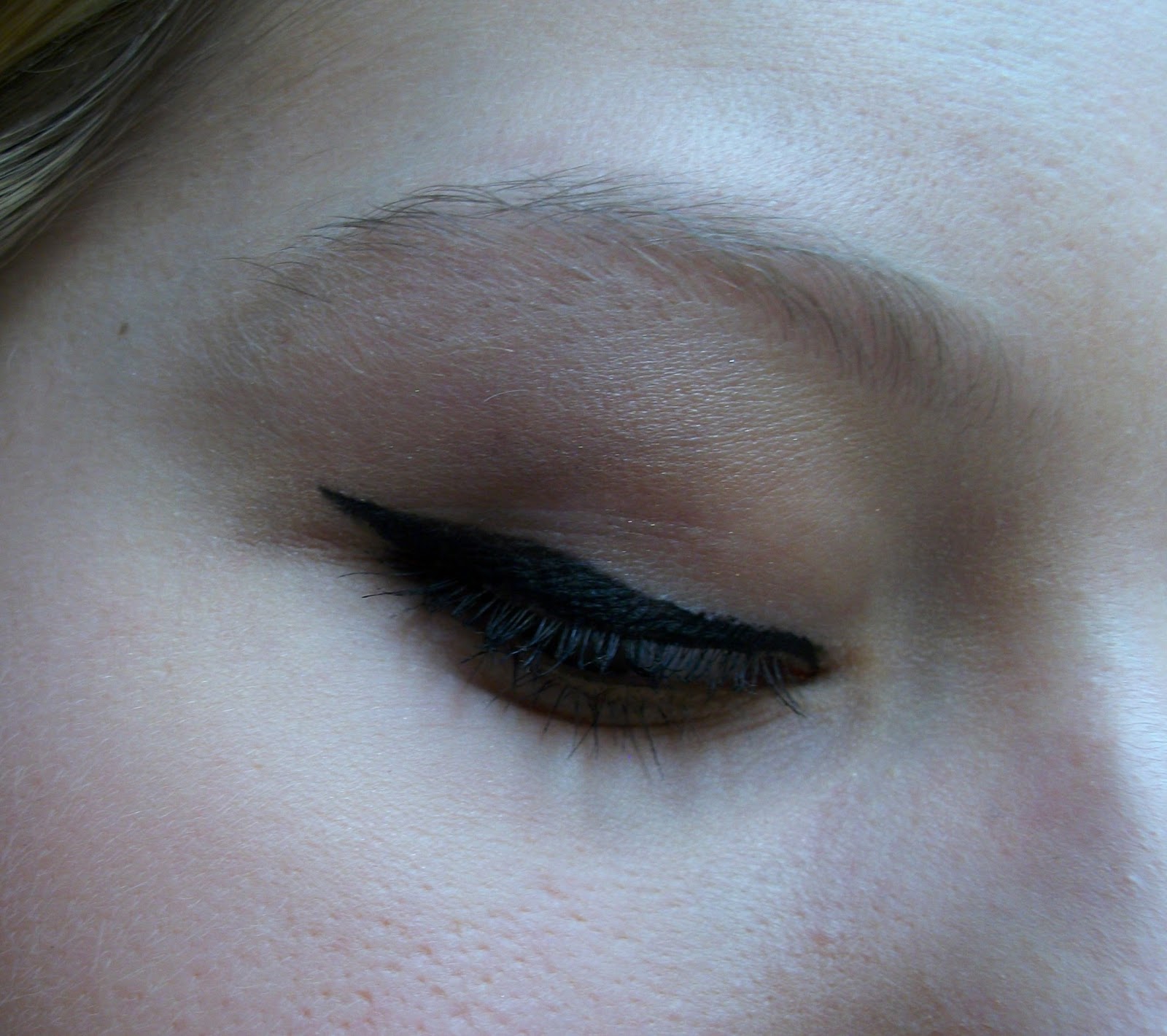 (oui les cheveux et les sourcils, c'est pas top, j'avoue)Malgré la texture de cet eye-liner, ça ne m’empêche pas de faire quelques dérapages, par exemple pour ces photos je voulais un trait plus fin, mais au final ça me plaît ! Je ne porte pas du liner souvent, mais quand c’est le cas, je commence par appliquer une base (type Primer Potion d’Urban Decay), puis je dessine très légèrement le creux avec un fard marron mat, ensuite une touche lumière sous l’arcade. On passe au liner, puis du crayon noir en muqueuse supérieur pour combler le blanc qui reste, en muqueuse inférieur un crayon chair puis du mascara et le tour est joué !