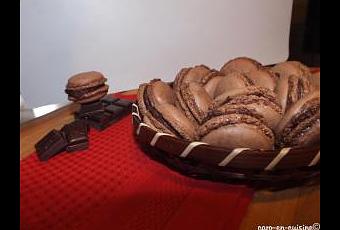 Voilà enfin mes macarons tout chocolat. Que c'est bon, une coque croquante, un coeur moelleux et une ganache au chocolat fondante et pleine de saveurs ...