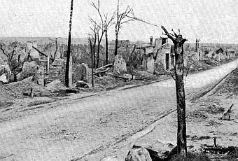 "Le cimetière de la Neuvillette à droite de la route, entre les dernières maisons de Reims et le village, fut complètement bouleversé par le réseau des tranchées de première ligne. Le village de La Neuvillette, entièrement ruiné, fut le théâtre de combats acharnés pendant l'offensive allemande de mai 1918.
