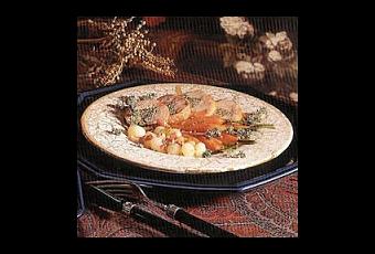- Farcir les râbles et rabattre les 2 parties fines. Ficeler, huiler, poser dans un plat et parsemer de sarriette. Enfourner 30 mn en tournant les râbles 3 ou 4 fois. Accompagner de légumes, cuisinés avec des lardons.