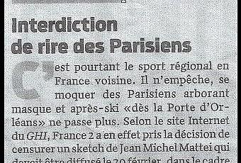 Cet entrefilet paru dans le principal journal de Lausanne, Le Matin, du 23/2/13 en dit long sur l'état de notre pays où le politiquement correct impose une nouvelle forme de dictature. Comment peut-on traiter l'humoriste savoyard de raciste? Il est temps que la France cesse de marcher sur la tête