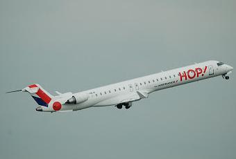 Pour contrer les low-cost européennes easyJet, Ryanair mais aussi Volotéa qui multiplient les ouvertures de lignes domestiques, Air France a dévoilé le 28 janvier 2013 le nom de sa nouvelle compagnie régionale, HOP! issue de ses trois filiales régionales : Brit-Air, Regional et Airlinair.Les premiers avions peints aux couleurs de HOP! sont sortis ces jours derniers des ateliers de Sabena Technics à Bordeaux. Le CRJ-1000 F-HMLL fut le premier aux couleurs de HOP! Il a été mis en ligne dès le 6 mars au départ d'Orly vers Brest, Mulhouse et Strasbourg. Le CRJ-1000 F-HMLM aux couleurs de HOP! l'a rejoint dès cette semaine sur Nantes-Atlantique.