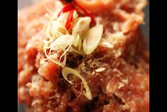 Raviolis à l’asiatique porc crevette aux goûts qui piquent…Ingrédients :Pour la farce : 250g de porc – 200g de crevettes – 2 oignons nouveaux - 2càs de sauce soja – 2càc de Nuoc Nam – 1 jaune d’œuf – 1càc de maïzena – 1càc de citronnelle émincée le plus fin possible (vous pouvez aussi la hacher) – 1càc de gingembre frais râpé – ½ oiseau ou plus selon les goûts