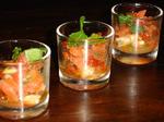 Mélangez tous les ingrédients et dressez les verrines. Décorez avec une feuille de persil plat ou d’estragon. Placez au réfrigérateur au moins 1 heure.