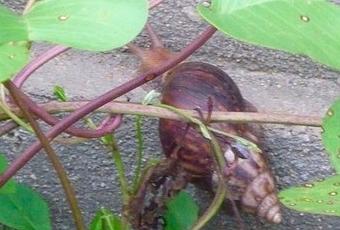 Hé oui, même si on est au Sri Lanka, après la pluie les escargots sont de sortie, à se promener sur les murs et à profiter de l'humidité !