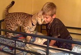 Cela dit, le chat en question n'est pas n'importe quel chat : je me suis demandé un temps s'il agissait d'un très grand Bengale ou bien même d'un serval. Pas loin, en fait : c'est un Savannah ! Je ne connaissais pas cette espèce, mais cela a l'air extraordinaire comme compagnon.