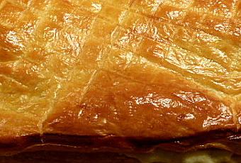 Terminer par recouvrir de l'autre pâte feuilletée. Souder les 2 pâtes à l'eau. Badigeonner le feuilleté avec l'oeuf battu.