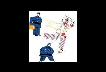 Lu dans le cadre du Prix Sorcière. J'ai eu un peu de mal avec ce livre de Ruth Vilar et Arnal Ballester. Je n'ai pas accroché au style, ni des dessins, ni du texte. L'image prend la double page et le texte, composé d'une seule ligne par page, court en bas. C'est l'histoire d'un facteur, Quifaiquoi, de ses livraisons et de ses rencontres, réelles ou rêvées. Et le tout en apprenant à compter "Il a une chaussure, deux paires de lunettes, trois montres de gousset et quatre sacs en cuir..." jusqu'à 33. Le texte est étrange, il est question d'hymne national, de révérences, de révolution populaire et d'ordres d'expulsion. Et de monde heureux... Pas sûr que tout soit très accessible. Et en plus, ça raconte des trucs faux : "Il travaille douze jours par semaine, treize mois par an". Alors, certes, c'est rigolo de compter les 19 jeunes filles et leurs 17 noeuds roses. Mais ça s'arrête là. Quand au dessin, il a de jolies couleurs vives. Mais je n'aime pas trop cette stylisation des corps ni même ce jeu sur le plein et le vide. Bref, je ne conseille pas.