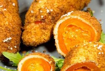 Enrober le piment successivement de farine, d’œuf, et de chapelure. Réserver au frais.