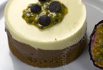 Au moment de servir, décorer de jus de fruits de la passion et de quelques pépites de chocolat.