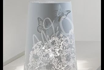 Cette lampe créée par le designer Matteo Ugolini pour la marque Karman est en aluminium. On peut se rendre compte du jeu parfait des pré-perforations et des découpes qui rendent ces luminaires poétiques et un peu magiques.