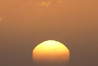 Voici une illustration de la réfraction atmosphérique lorsque le Soleil se trouve proche de l'horizon.